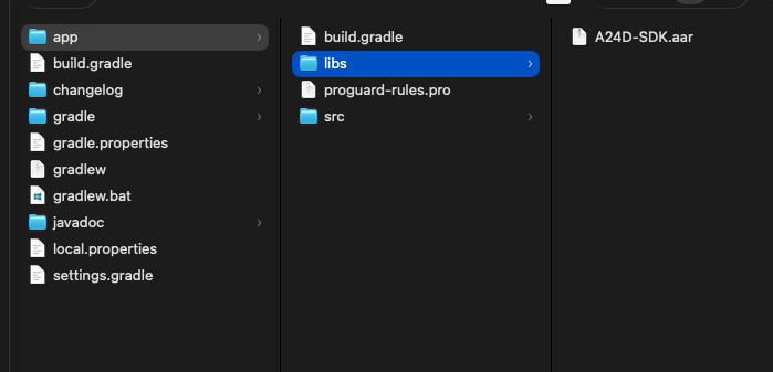 libsfolder and pasteA24D-SDK.aarinto this folder.