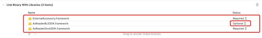Add AsReaderDockSDK.framework and AsReaderBLESDK.framework¶