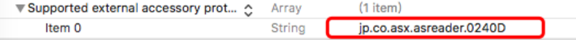 Add the following protocols to the Supported external accessory protocols entry in your plist file.