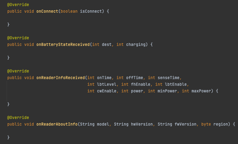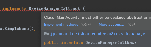 DeviceManagerCallbackinterface.// Example: Implementing DeviceManagerCallback in MainActivity public class MainActivity extends AppCompatActivity implements DeviceManagerCallback {